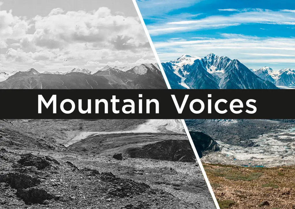 This story comes to us from the book Mountain Voices. Paired with photos from the Mountain Legacy Project, Mountain Voices is a collection of unique short essays from alpinists, activists, artists, and mountain researchers as they share their unique and fascinating perspectives.