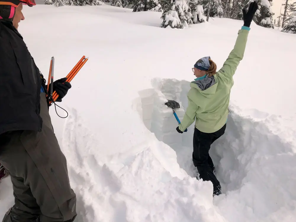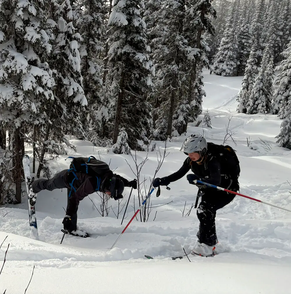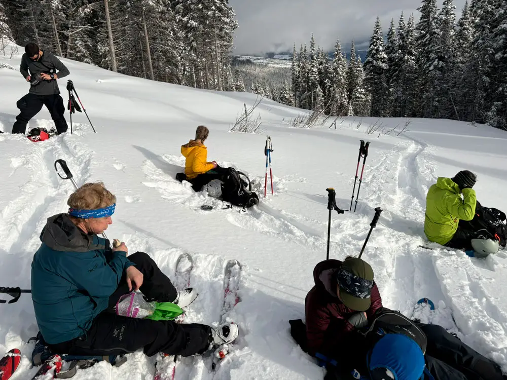 We took time to nerd out over avalanche safety and snow quality and worked on our kick turns, which sometimes looked more like awkward snow yoga.