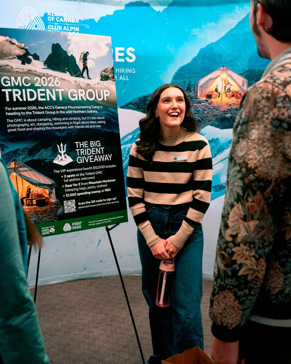 Our new addition to the marketplace this year was our ACC Adventures booth. Hopefully by now you know that we offer everything from AST courses and backcountry ski traverses, to rock skills and hiking at Lake O’Hara, but did you know about the Big Trident Giveaway? Perhaps our staff wielding a life-size trident was a huge giveaway… Our biggest ever contest offers a chance to win a VIP pass to our General Mountaineering Camp for next Summer. Win two spots at the Trident GMC, all the gear that you and your partner will need, plus $1,500 to spend as you please at MEC, is an incredible opportunity for mountain enthusiasts of any level. If you weren’t able to sign up for this amazing opportunity at the booth, click here to enter!