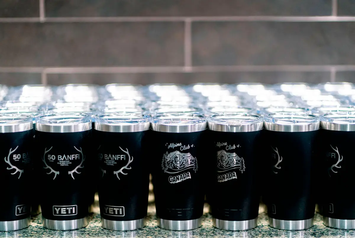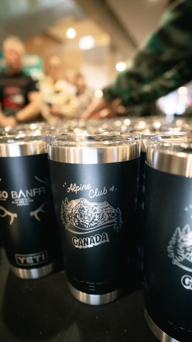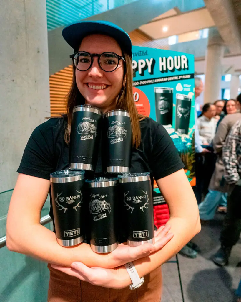 The iconic YETI x ACC mug returned! It’s become a bit of a tradition at the BMFF that the ACC partners with YETI to create a limited edition Rambler mug featuring a new original mountain artwork. This year’s mug was extra special, not only adorned with Emily Beaudoin’s drawing of Mount Robson, but also the 50th Anniversary BMFF logo. It was only available during the 5pm-7pm “happy hour” but sold out in under 30 minutes. Many attendees of the BMFF were excited to grab the limited edition Rambler mug, including those who collect it every year in each colour and unique design. The mugs contained a drink ticket and raffle ticket, which afforded some lucky winners amazing prizes. Thank you to YETI, Core Values, and Wild Rose Brewery for making the happy hour such a smash success!