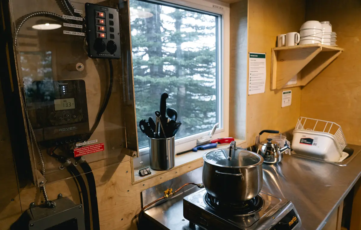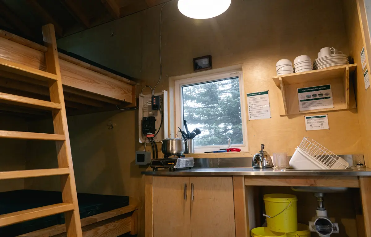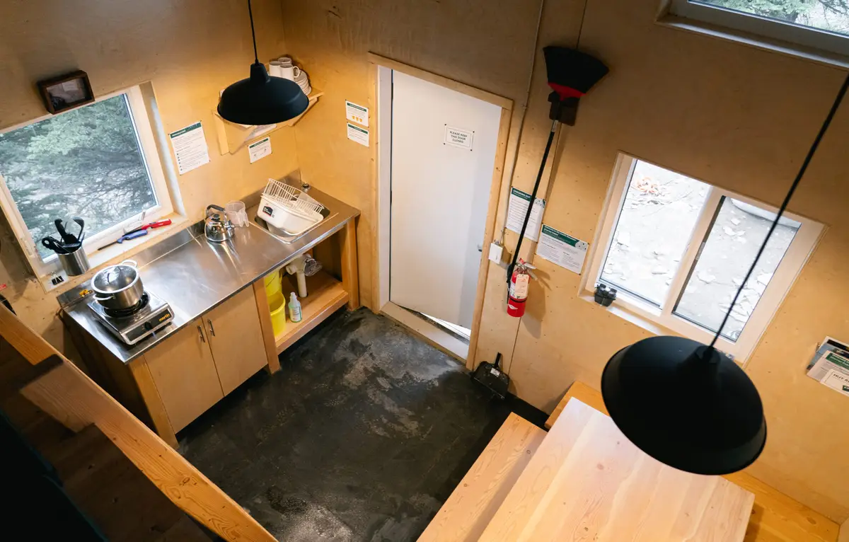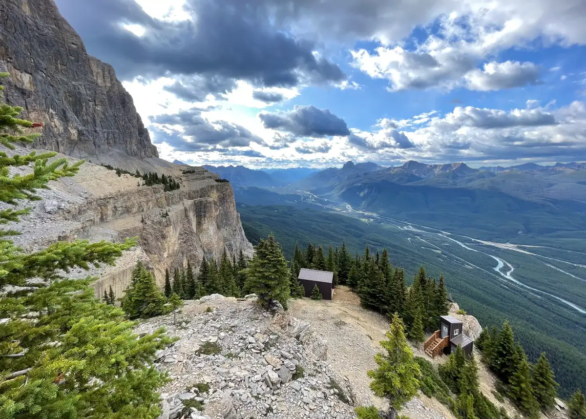 Castle Mountain Cabin boasts one of the most exhilarating views in the Rockies and is the perfect base for climbing classic 5.6 traditional routes such as Brewer’s Buttress, Bass Buttress, and Eisenhower Tower on Castle Mountain. Perched on Goat Plateau, halfway up Castle Mountain in Banff National Park, this small shelter serves primarily as an overnight base for rock climbers aspiring to climb many of the traditional routes on the upper cliffs. Staying overnight at the hut cuts 3 to 4 hours off the approach hike for the upper cliff climbs. It’s also one of the most dramatically placed huts, with stunning views up and down the Bow Valley.