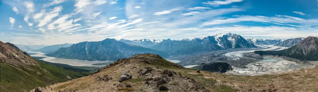 In the ’A’ä˛y Chù’ area, that mountain up there, I have known it as ’A’ä˛y (By Itself Mountain). I have known stories from around that area. Á ma—my mother—was thirteen years when she and her family travelled from K’ùa Mân’ (Kloo Lake) down the Jarvis River to the Kaskawulsh River. Á ma talks of walking up the Kaskawulsh River to the toe of the glacier and crossing over the glacier to go around ’A’ä˛y Chù’. They had a nàánnji—a temporary camp—at Thechàl Chù’ (Sheep Creek); later they followed it all the way up. When they walked over the headwaters of Khàr Shan Nji Chù’ (Congdon Creek) through to Nines Creek, they were astonished to see the Alaska Highway was already being built, for they had heard about a road from Frank Sketch, the trading post man at K’ùa. When they had left down the Jarvis, there was no sign of a highway being built.