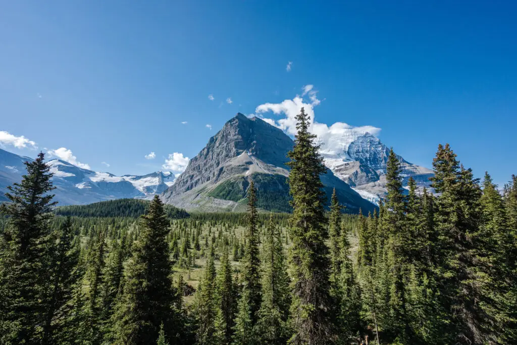 The view facing south – Rearguard Mountain and Mount Robson in view.